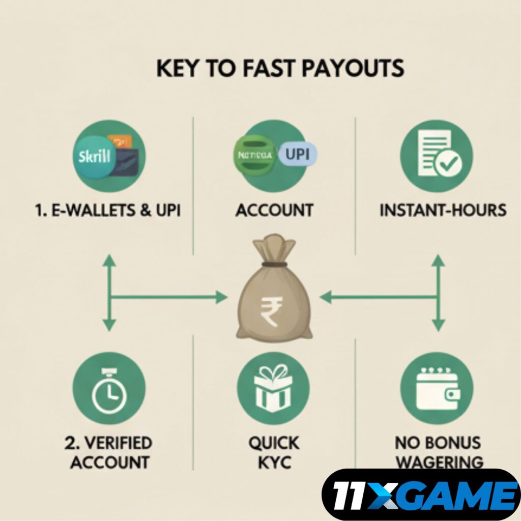 A Fast Withdrawal Casino India is an online gaming site configured for Indian players that offers casino games, virtual games and betting with a strong emphasis on quick cash-outs. “Fast withdrawal” means you can deposit funds and, when you win, request a payout and receive your funds in a short span (minutes rather than hours or days). Platforms like 11xGame – through domains such as11xgame.win/ and 11xgame.vip – promote rapid deposits and withdrawals, large game libraries and Indian-friendly